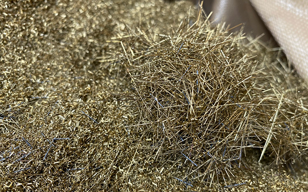 放電加工の工程で発生するの真鍮製のワイヤーです。